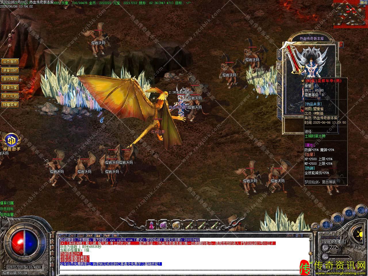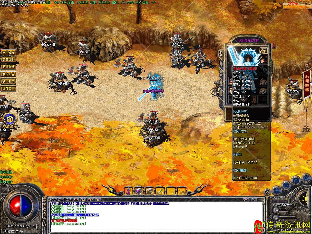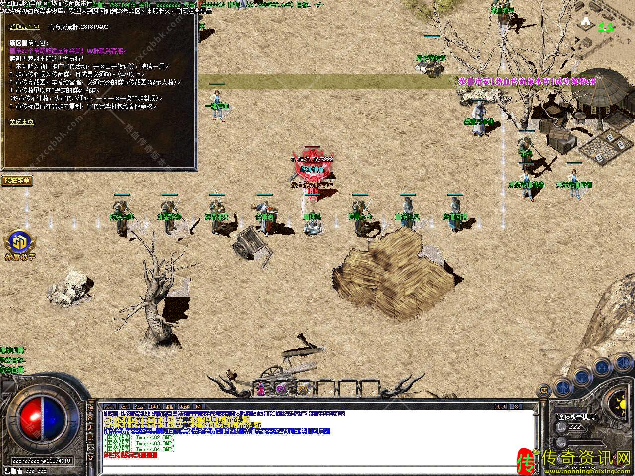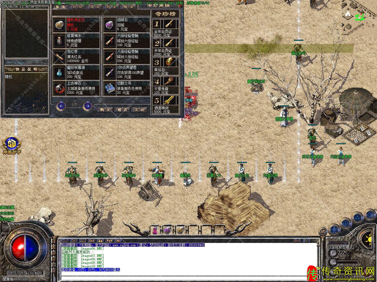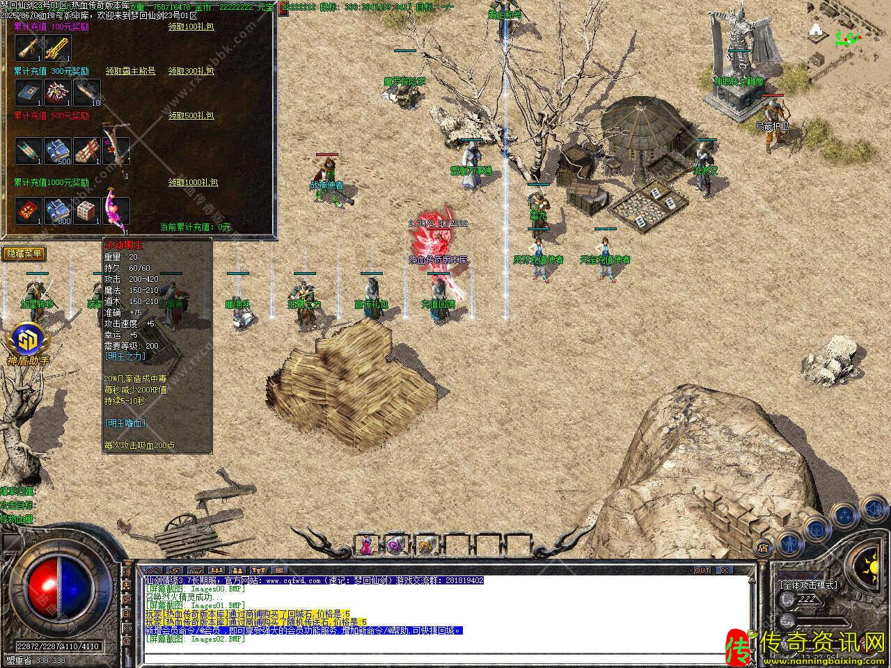 三、新增会员命令/@会员 ,即可享受强大的会员功能服务.增加新命令/@帮助,可快捷回城,高级装备,10万,20万,30万BOSS爆出,终极装备在人形怪,50万,80万BOSS等怪身上爆出。