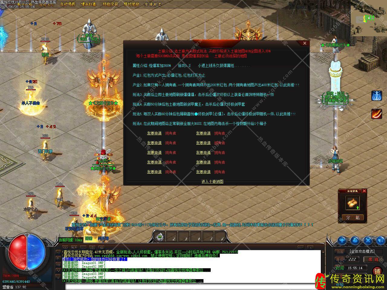 五、新增必爆回收件活动,每个新区1个小时刷新一只必爆回收件,总共刷新5次,屏幕上面活动大厅进入,合区后16-19点分别刷新超级BOSS,一共4次,必爆回收。