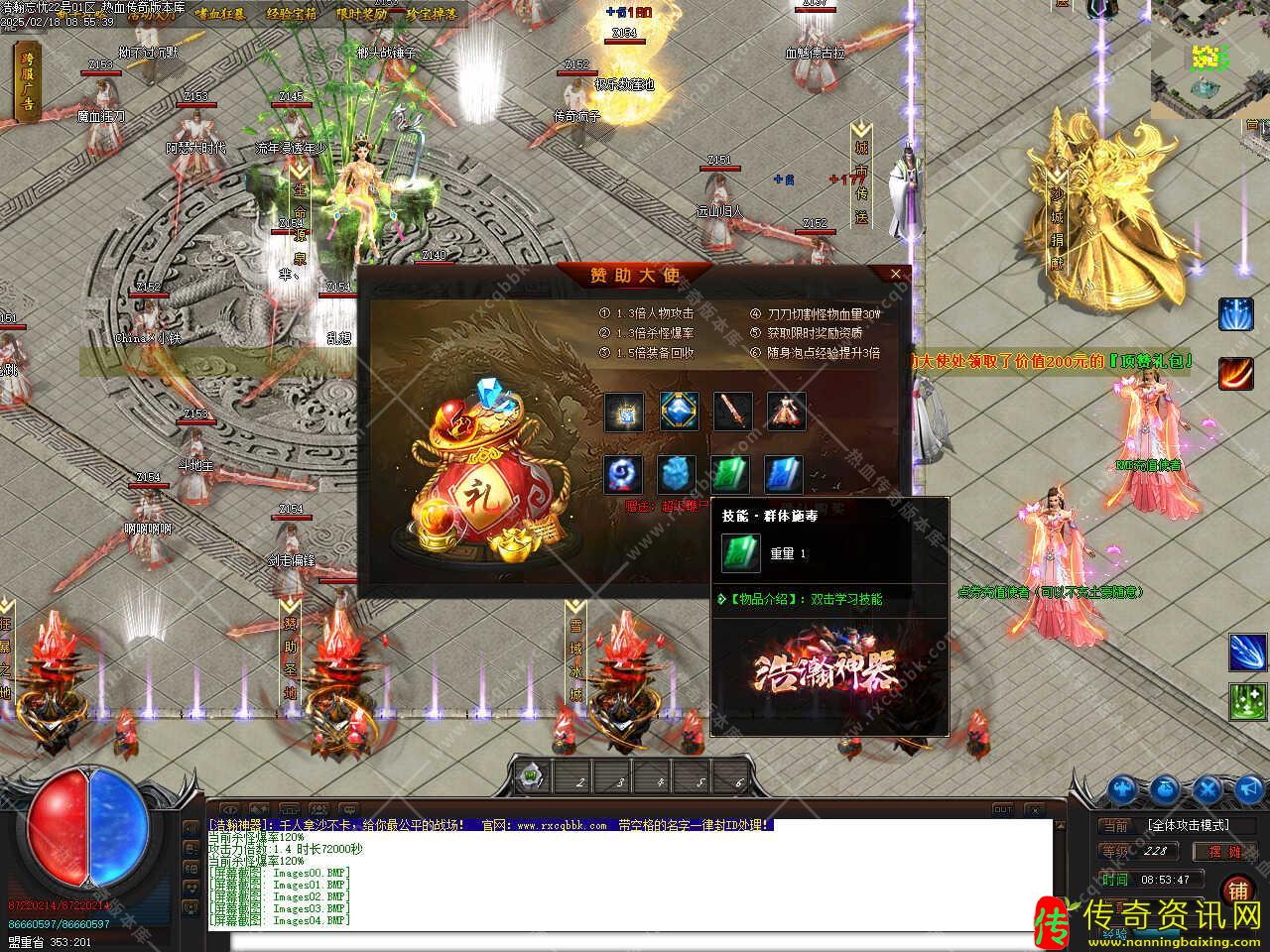 版本介绍:此传奇私服网站服务端全满42、纱绢20、狂暴2、项链5、全频吸怪5、渡劫丹10,其余全可打。