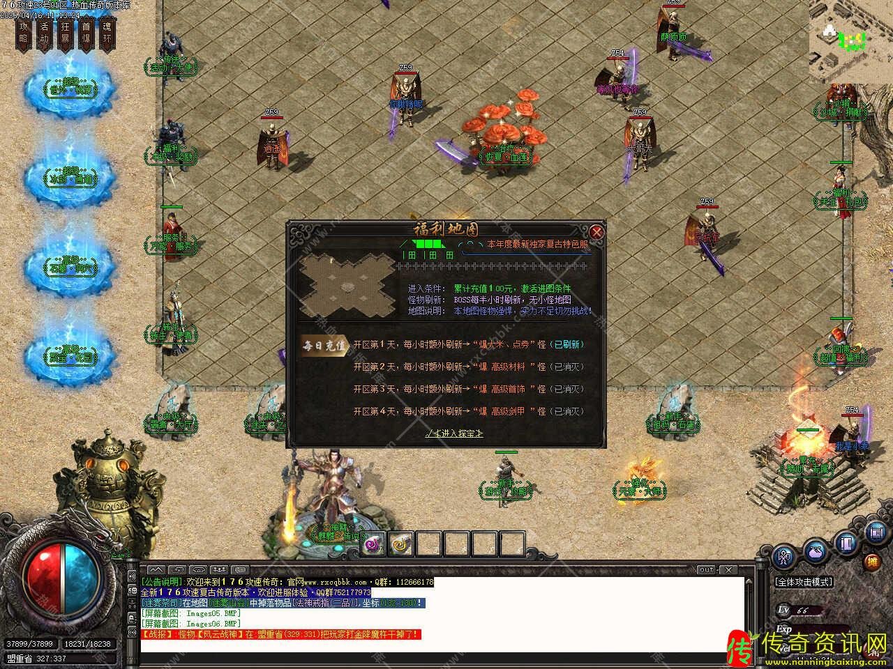 版本介绍:所有怪都爆制作合成材料和经验宝箱,BOSS爆率极高,本服推出全新升级模式,50级以后靠经验宝箱升级,所有怪都爆经验宝箱,在土城中间升级泡点处用经验宝箱免费兑换经验,也可以选择土豪泡点,转生地图、首充地图和BOSS会爆出大量经验宝箱。等级到达59级以后,在土城左边 309 335 [神之祝福]突破,可以获得超级衣服+武器!