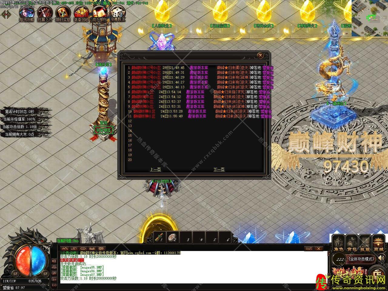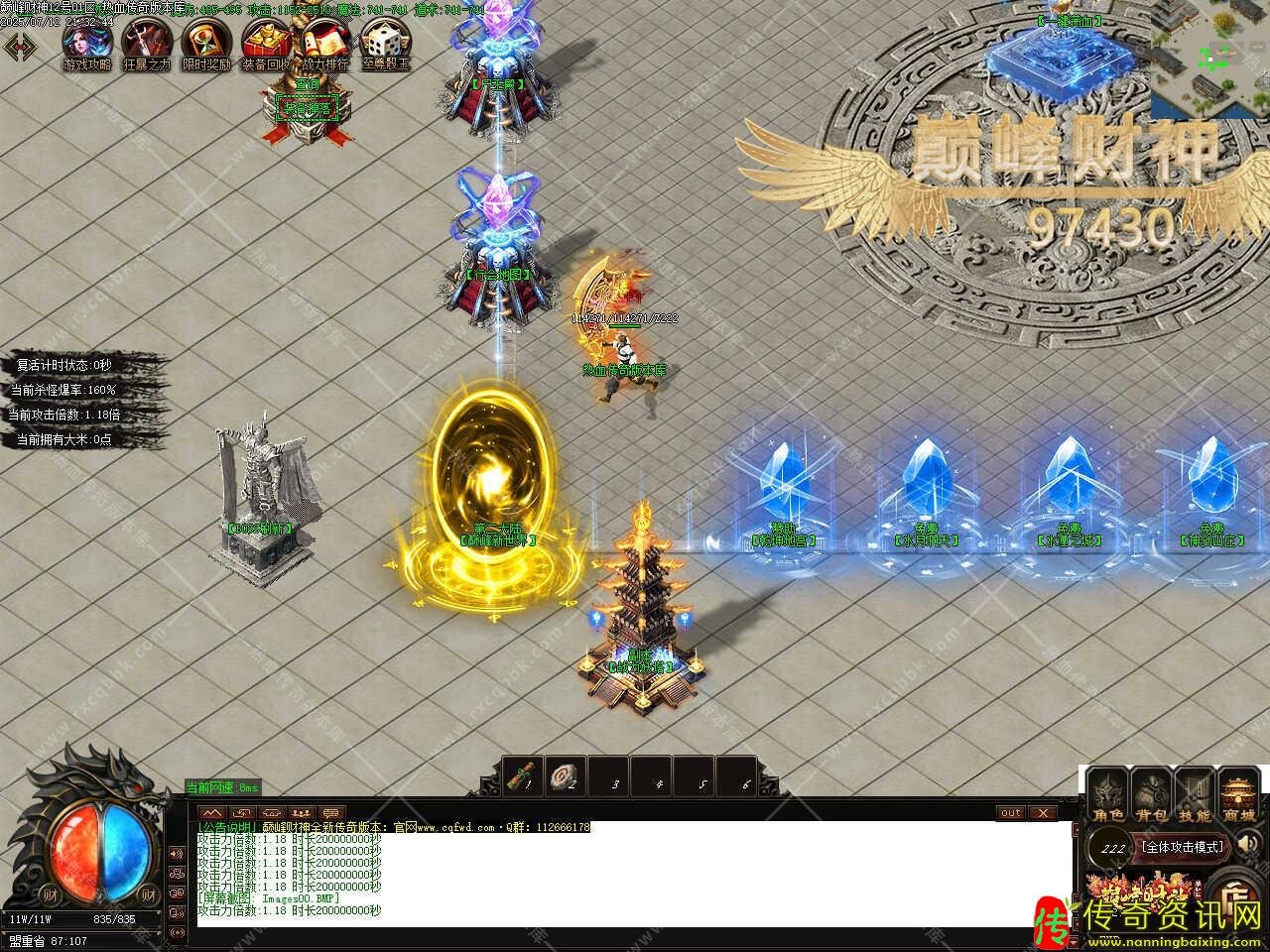 四、所有玩家上线自动开启随身泡点,只要在线任意打怪地图自动涨经验,每秒增加攻击力X20的经验,新手保底3000经验每秒;加入行会玩家额外获得20%泡点经验;神力玩家额外获得30%泡点经验;顶赞玩家额外获得30%泡点经验,以上都可累计。