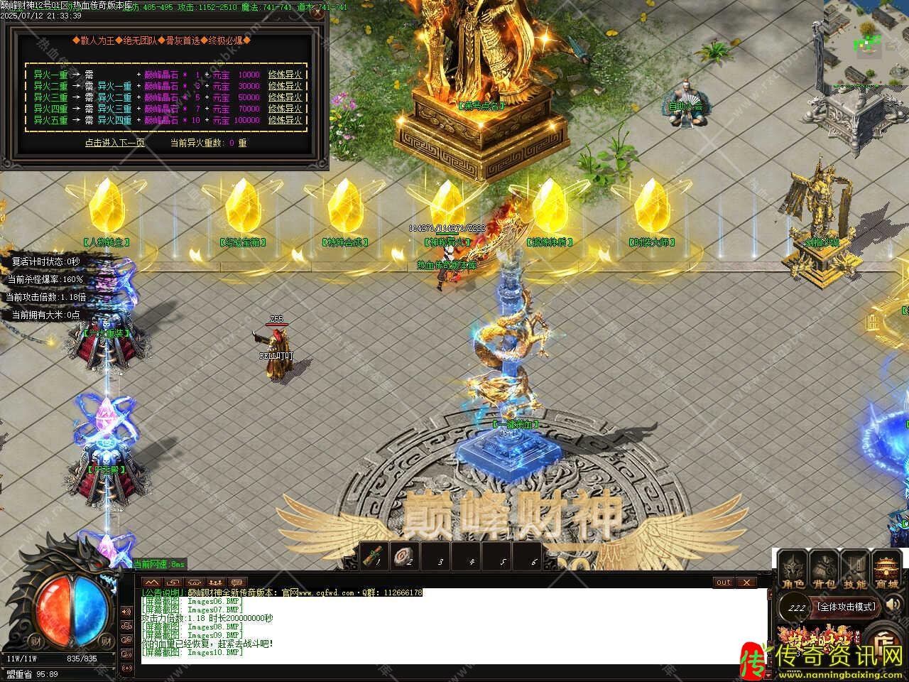 三、本服为纯元宝服,散人可开启终极赞助,可毕业,回归传奇最初的味,无任何药品回血全靠回血石,恭喜发财回血石每秒恢复2000HP,需要材料500000元宝进行升级。