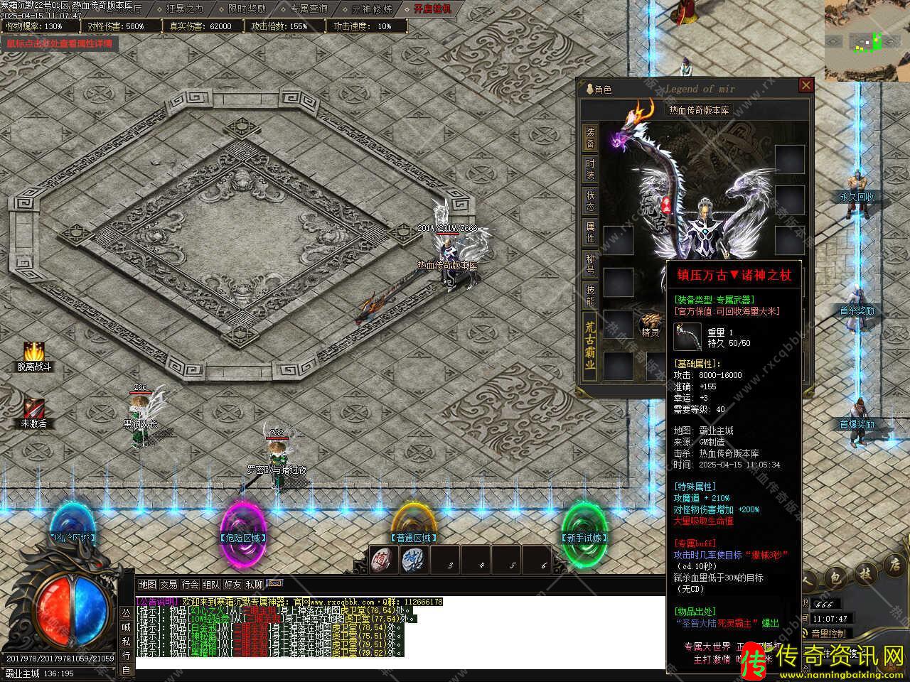版本介绍:此传奇私服网站服务端版本补丁大小16.31GB,PAK补丁全部一次加密,测试客户端为17周年纯净客户端,游戏兑换码:666888、888888、cq888,版本带有假人功能,自动上线。