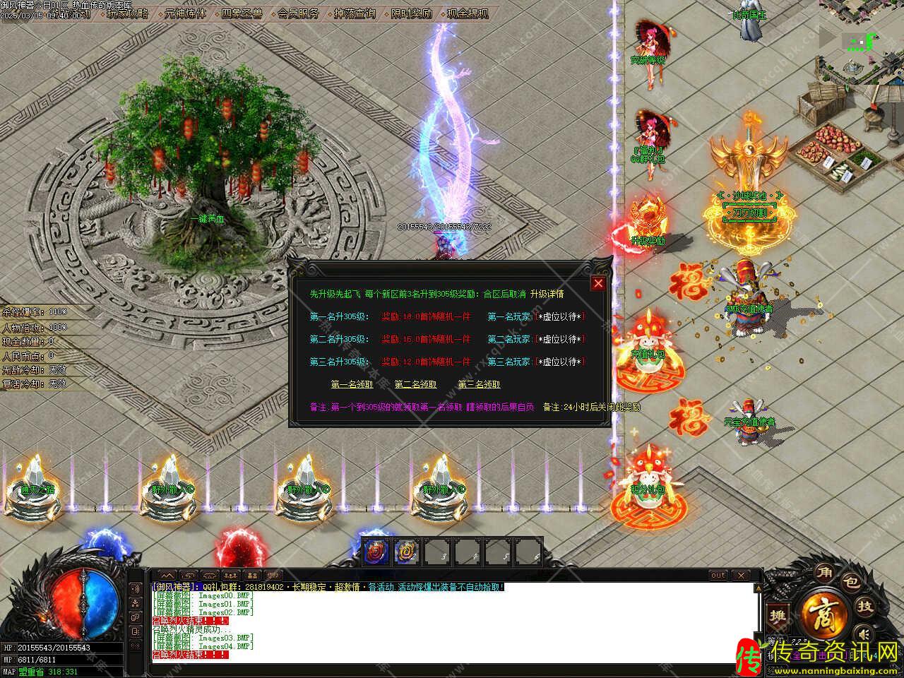 版本介绍:新增升级奖励功能,先升级先起飞,每个新区前3名升到305级奖励,合区后取消,本服等级全部靠打材料提升,无直接提升功能,做此NPC鼓励玩家,收材料带动散人,第一个到305级的就领取第一名领取,24小时后关闭此奖励。