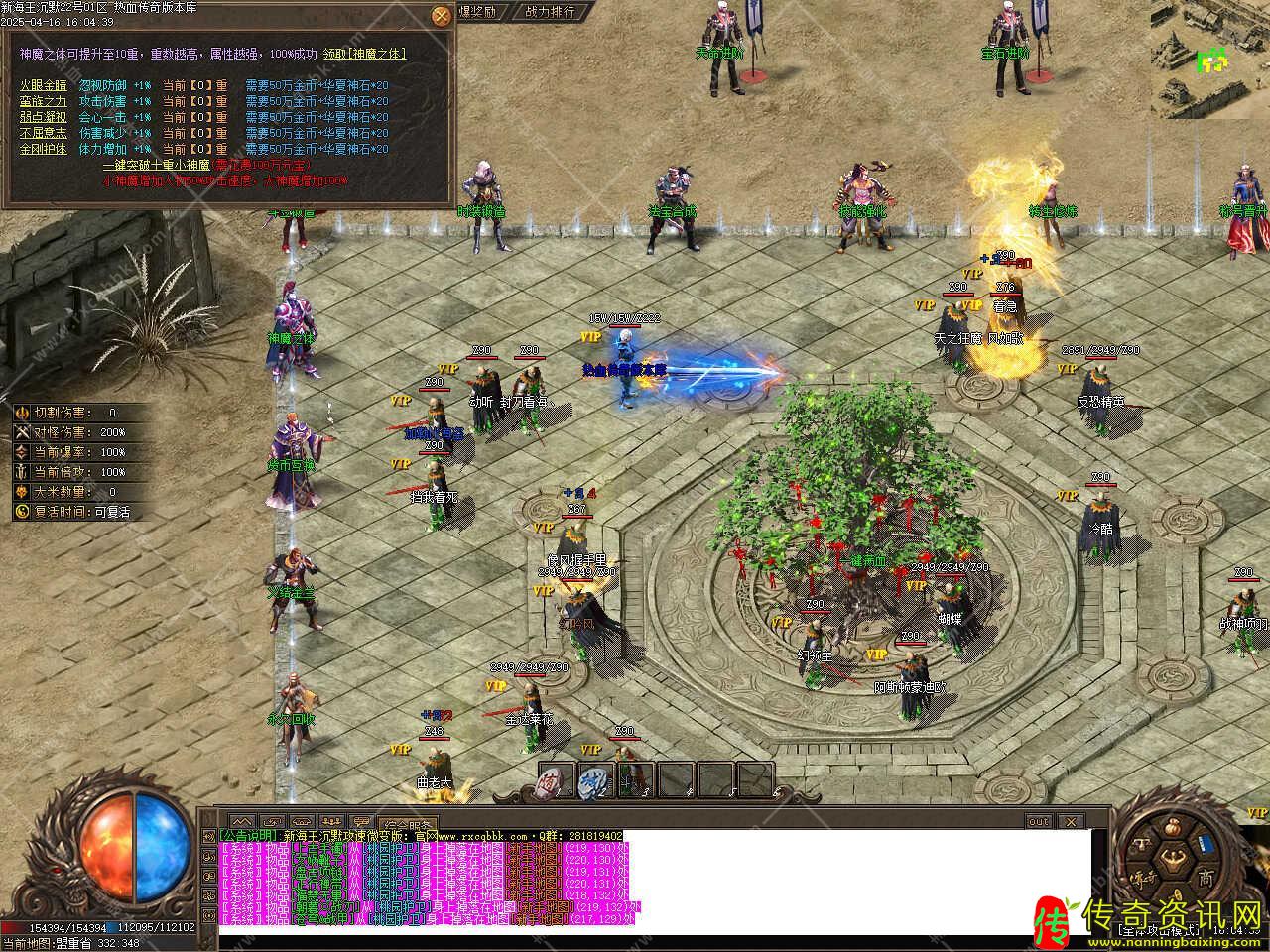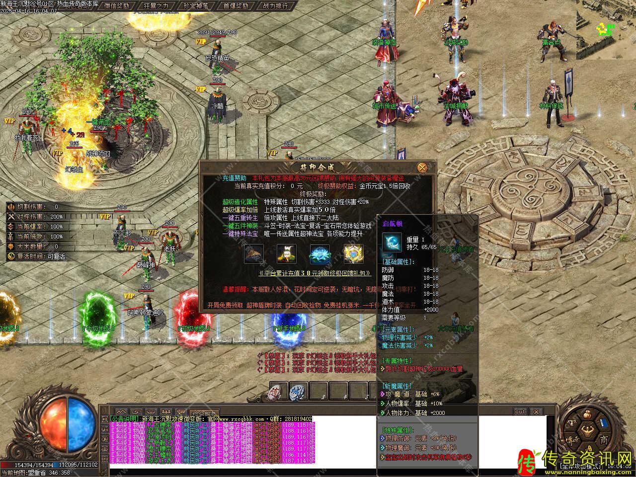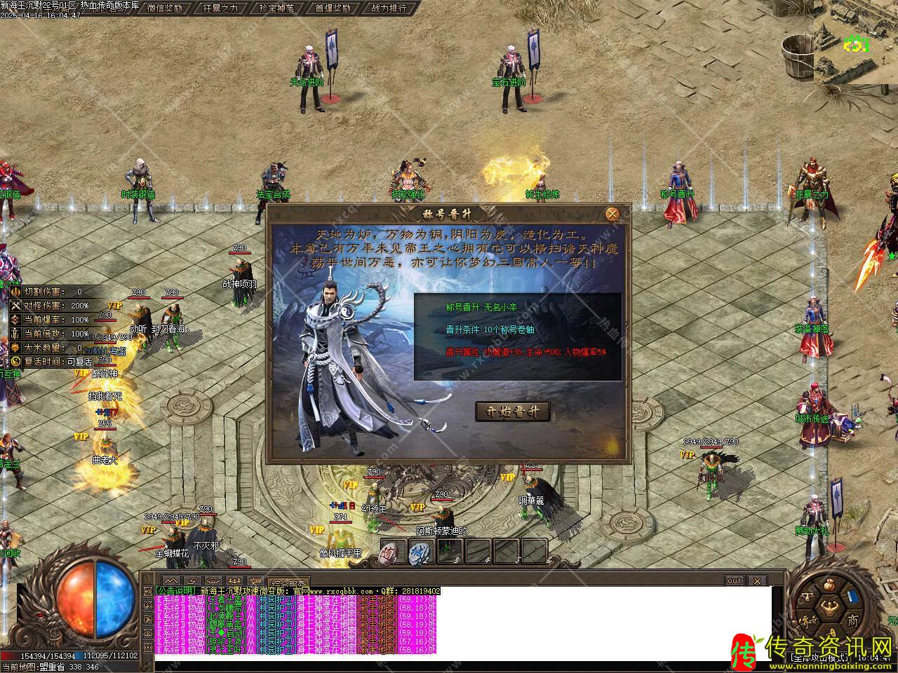版本介绍:新增神魔提升功能,最高可提升至10重,重数越高,属性越强,100%成功,神魔5项均达到10重可领取神魔称号,此称号获得附加属性,攻击300-300、魔法300-300、道术300-300,小神魔增加50%攻击速度,大神魔增加100%。