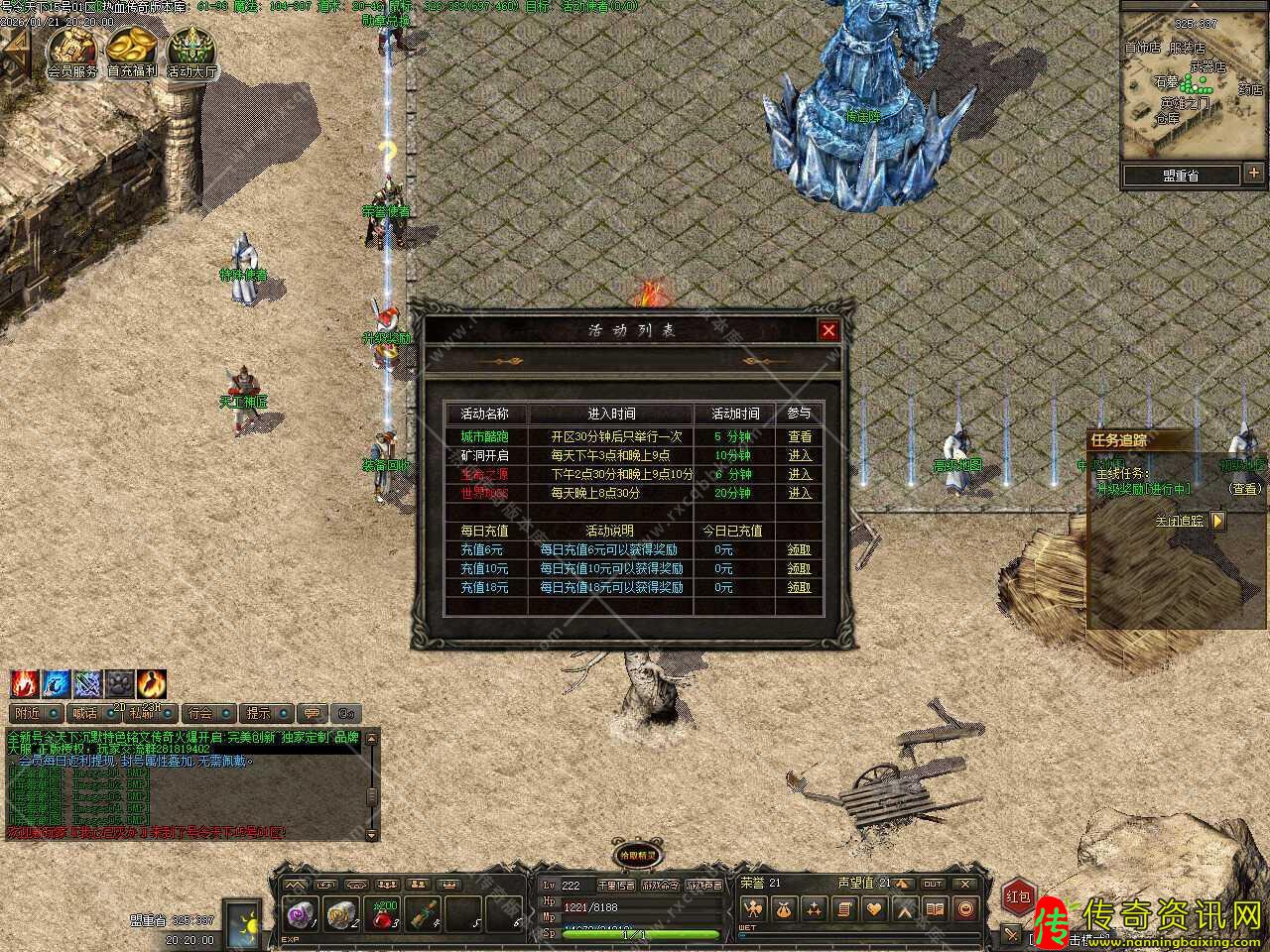 二.新增酷跑活动,开区后30分钟举行,在盟重安全区每跑动5步即可活动奖励,开区30分钟后只举行一次,在盟重安全区每跑动5步即可活动奖励,活动只开启5分钟。