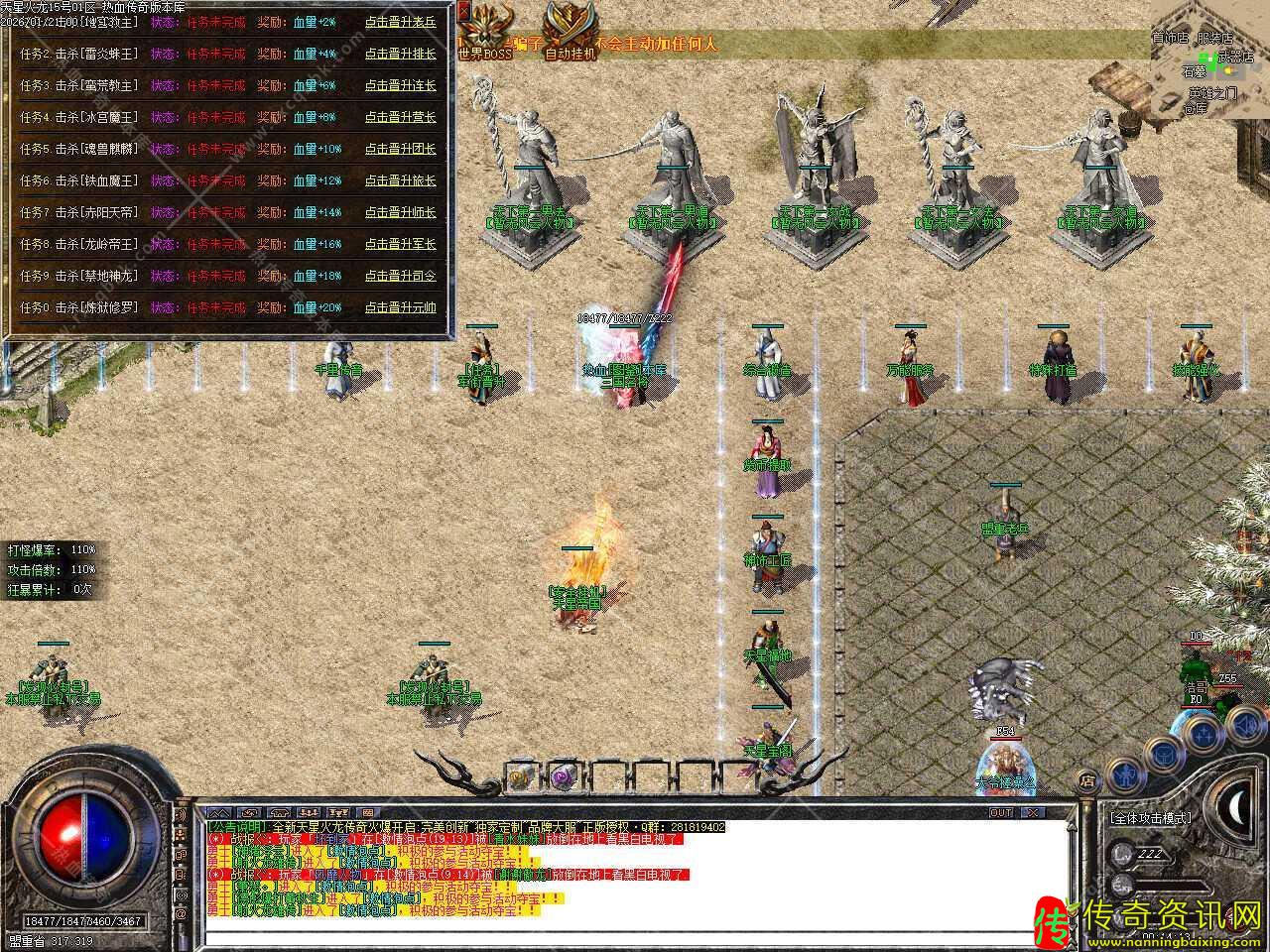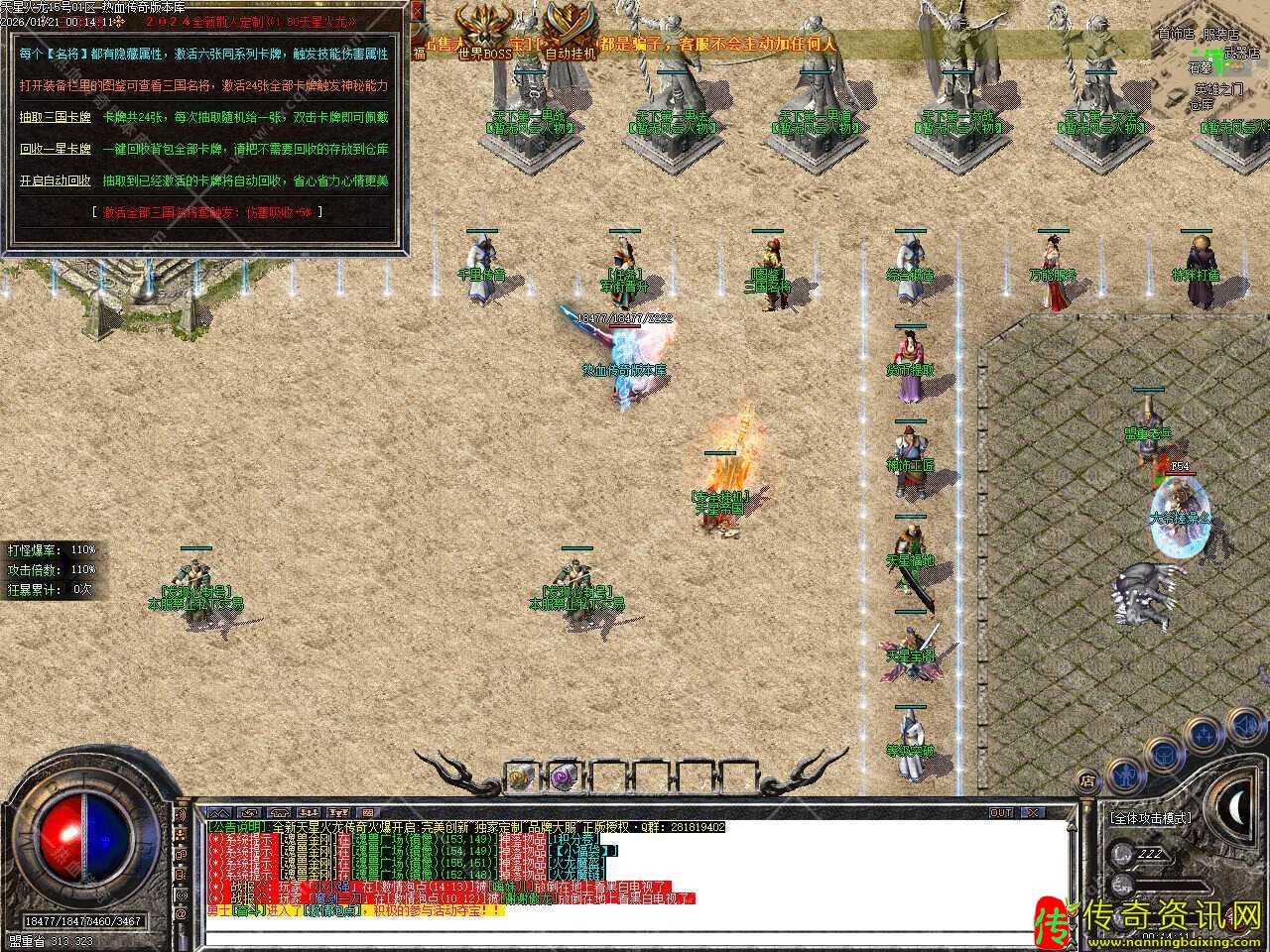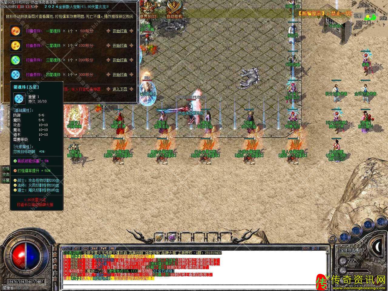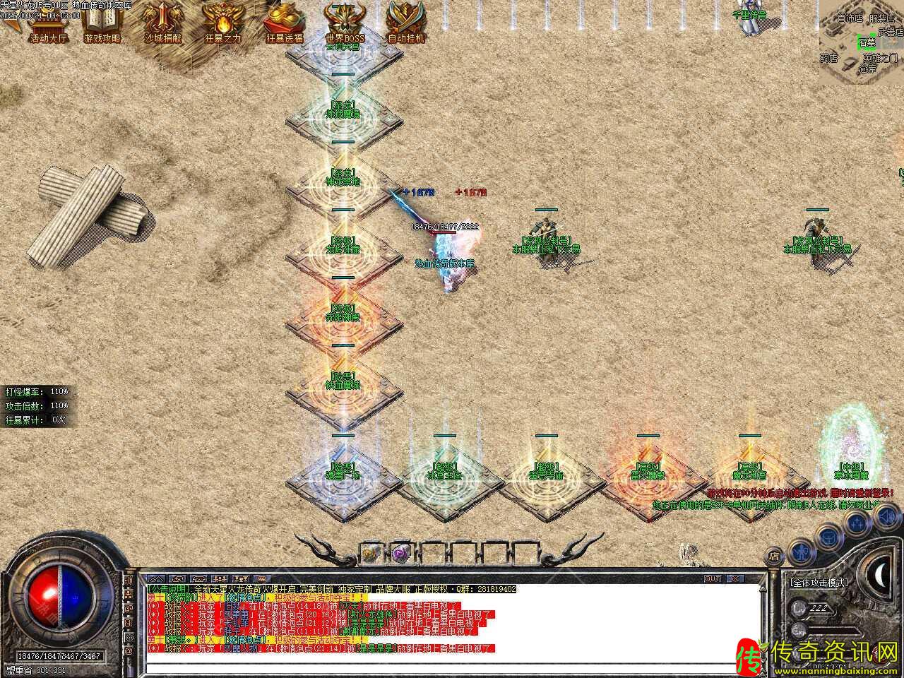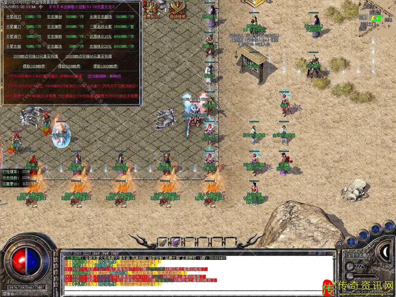 三.本服所有装备全靠打,冲级奖励所有物品打怪都可以爆出,完全散人福利,当等级达到61级,奖励钻石斗笠一个,等级到达62级,奖励钻石盾牌一个,等级到达63级,奖励钻石玉佩一个,等级到达64级,奖励天星衣服一件,当等级到达65级,奖励天星武器一把。