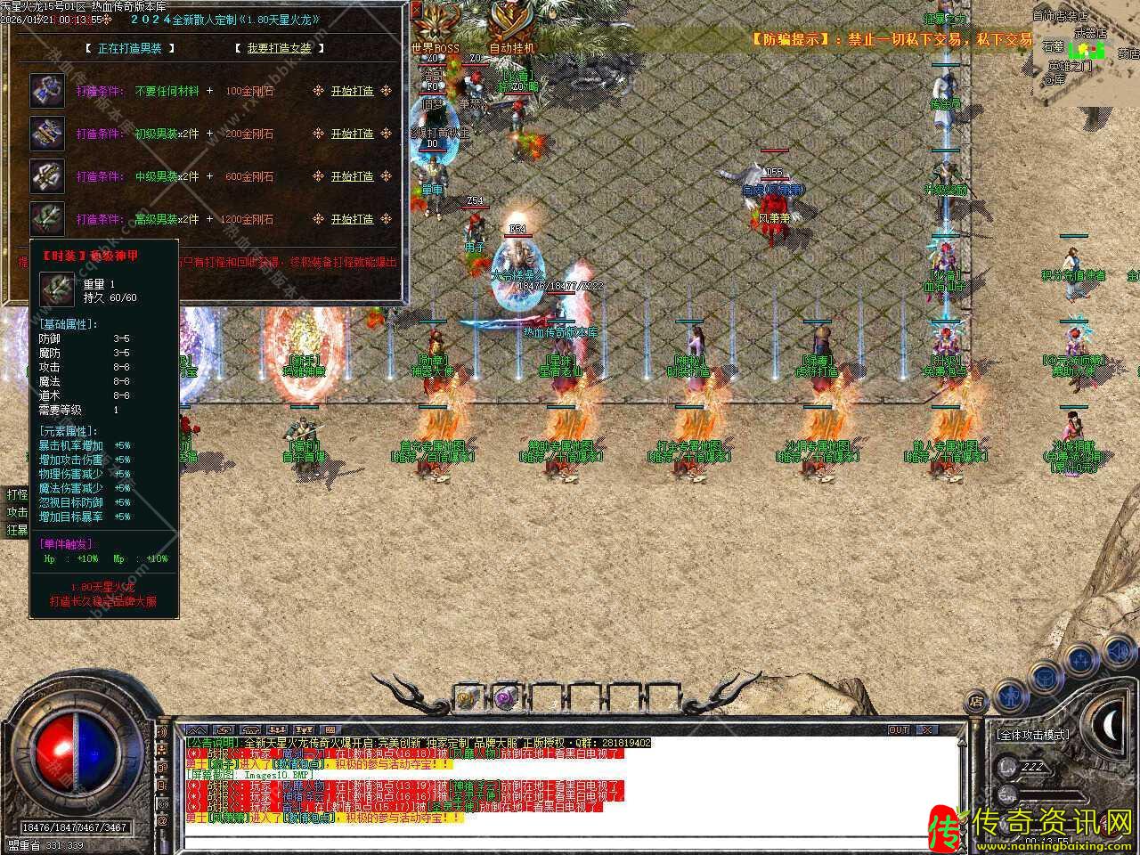 四.此版本中时装可以锻造,打造中级时装要初级时装加金刚石,打造高级时装要中级时装加金刚石,金刚石只有打怪和回收获得,终极装备打怪就能爆出。