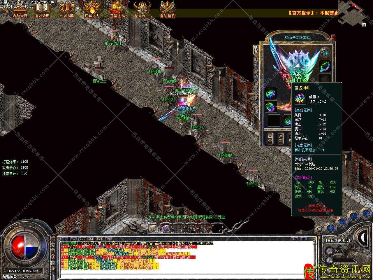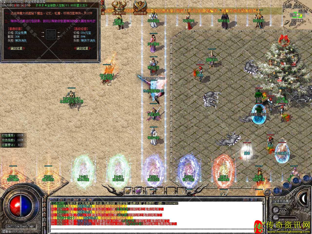 五.新增神饰工匠npc,远古神魔大战遗留下魔血、记忆、虹魔、祈祷四套神饰,共12件,神饰可以通过打怪获得,我可以帮助你恢复神饰的强大属性和光芒。