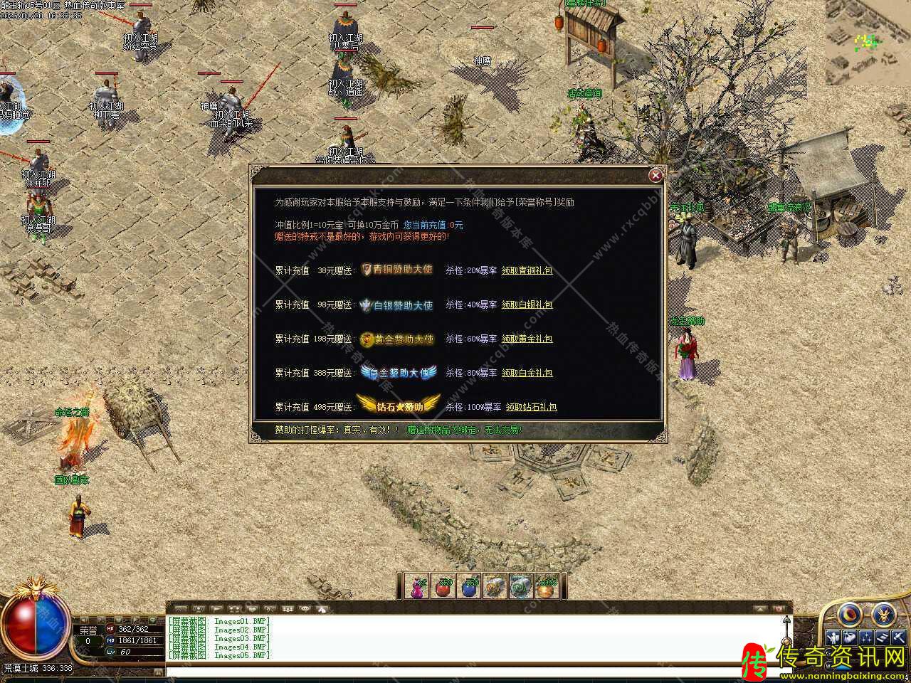 二.新手上线到土城后建议先找泡点服务NPC,泡点升到40级,40级很好升,接下来就可以打装备了,散人玩家建议选择道士、顶赞玩家可以先找金币兑换NPC兑换4000万金币,左上角找神兵熔炉把面巾做出来。书页前期尸王殿爆率还是不错的。精英怪和BOSS都有几率掉落书页、