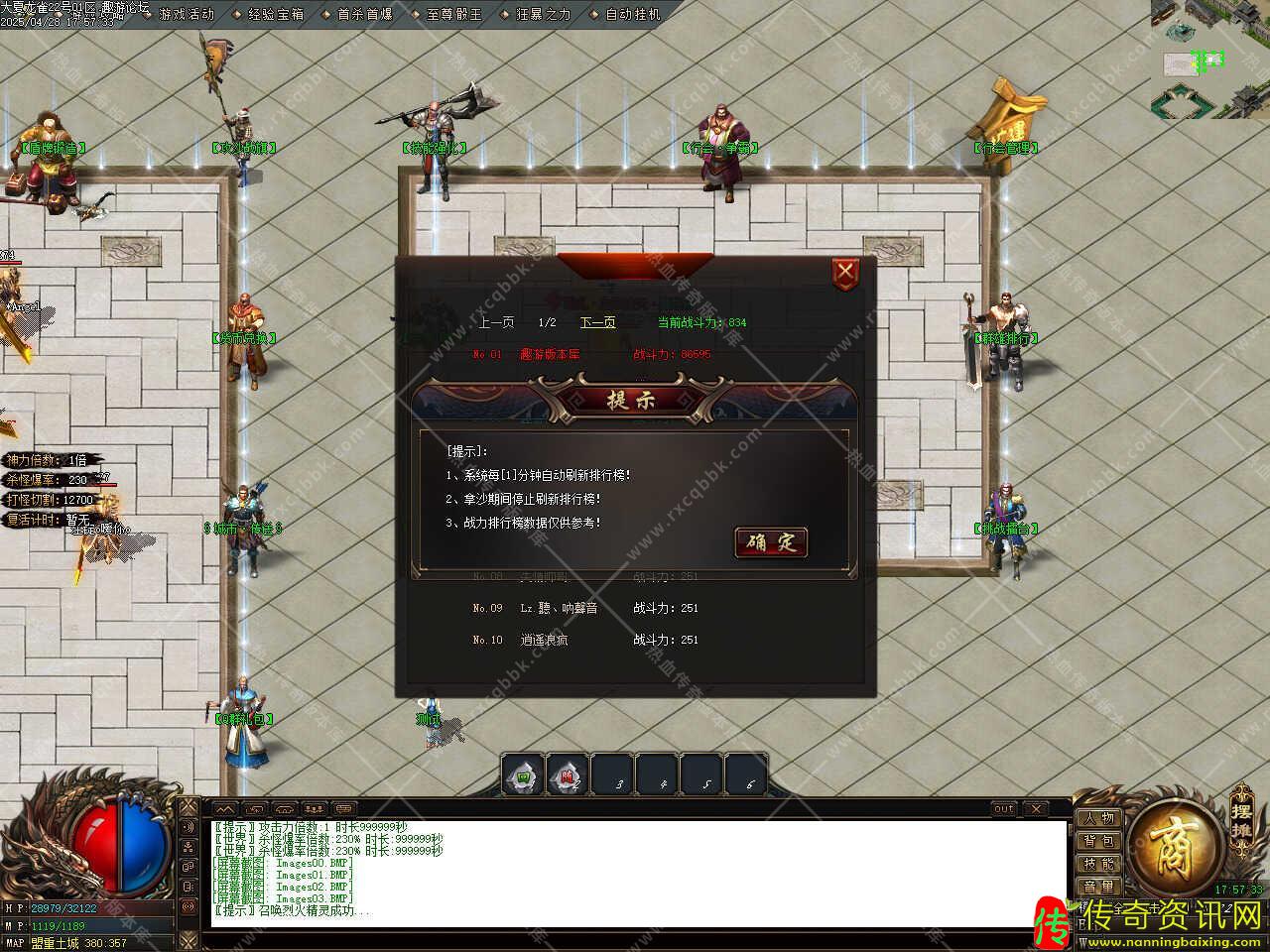 版本介绍:此传奇版本中任何3000万HP以上怪物都出终极,全服白名字怪物见到不要放过,HP少一样出终极,神器怪爆神器装备不要放过,散人多多打怪一定可以逆袭!