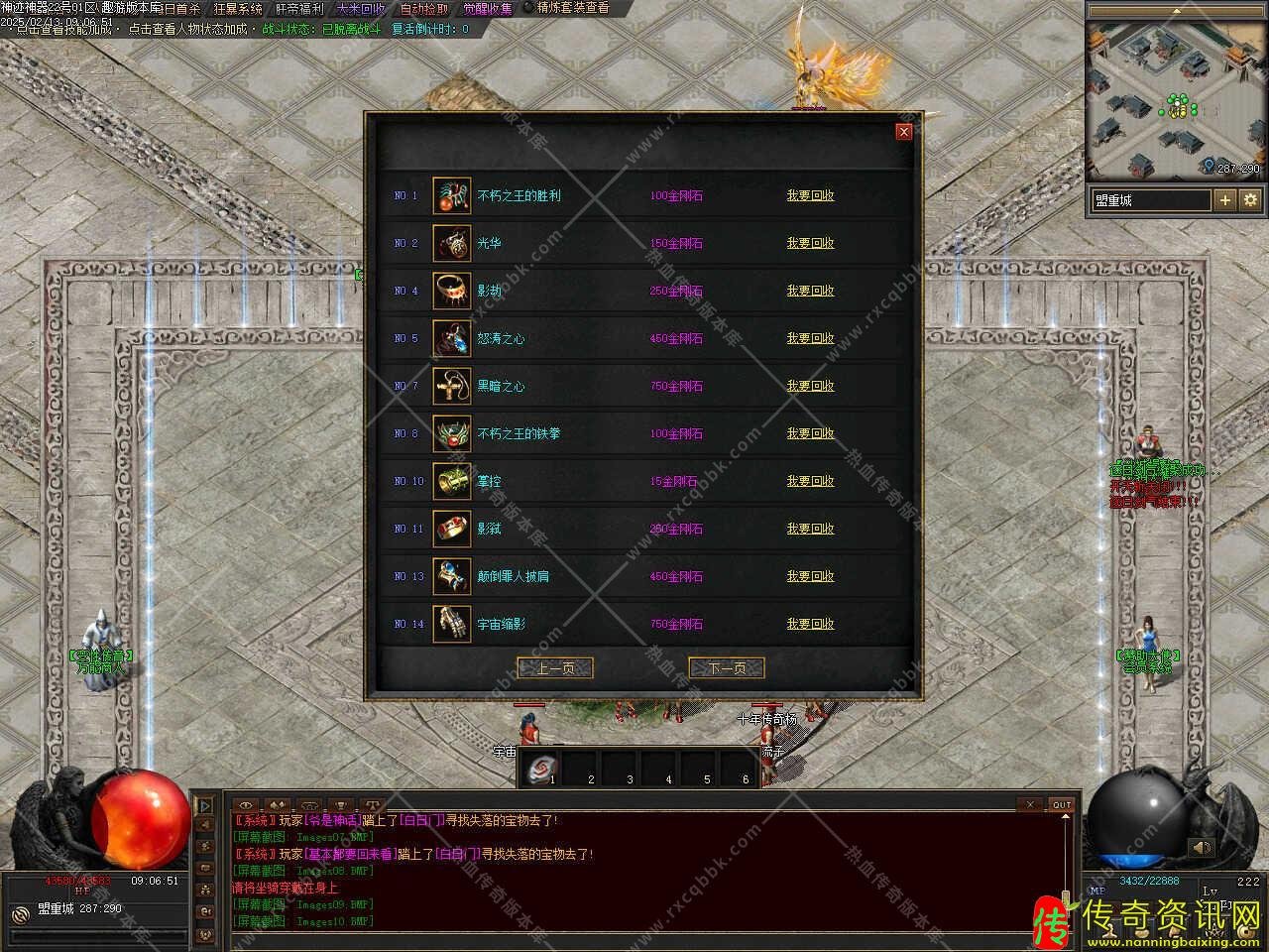 版本介绍:新增专属装备功能,当专属装备7件套,每一套都有不同的属性加成,当7件专属集合全,可以在NPC合成 <王者之戒>。