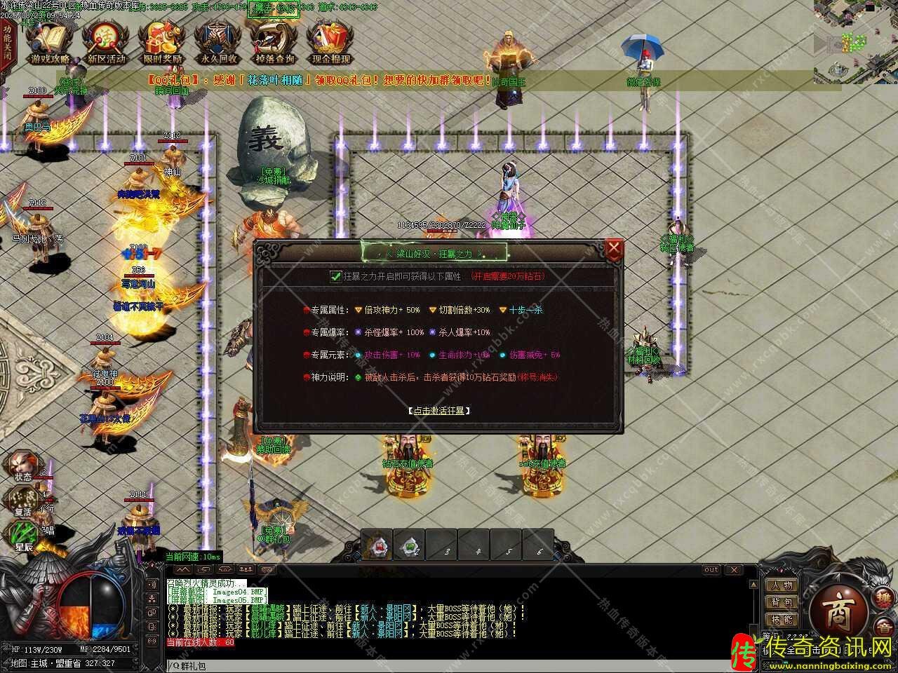 三、土城左上角锻造“聚义宝珠”,充值数量越高爆率越高,自行探索,激活“沙城捐献”拥有超强BUFF属性,尤其是【星辰切割翻倍及额外增加50%BUFF几率】,本服选择性赞助“最高500”可激活相应的符文BUFF。