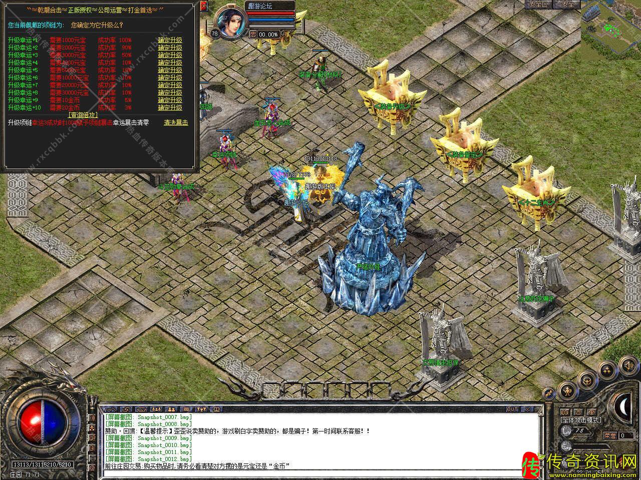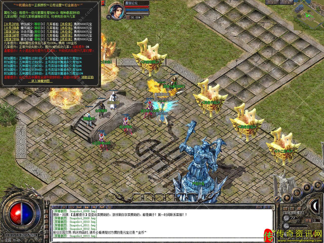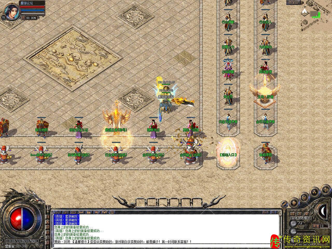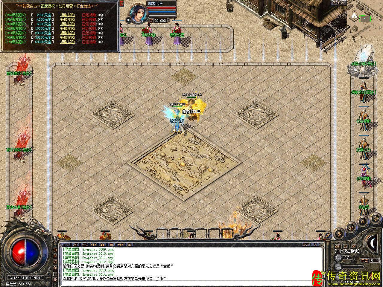 版本介绍:此热血传奇私服服务端活动多多,开区后15分钟开启开区福利活动,使用随机捡取各种宝贝,开区后20分钟开启土城跑酷活动,可获得大量经验,装备,终点奖励,开区90分钟后开启经验试炼活动,小怪几率爆1亿珠子,大怪10亿经验试炼。