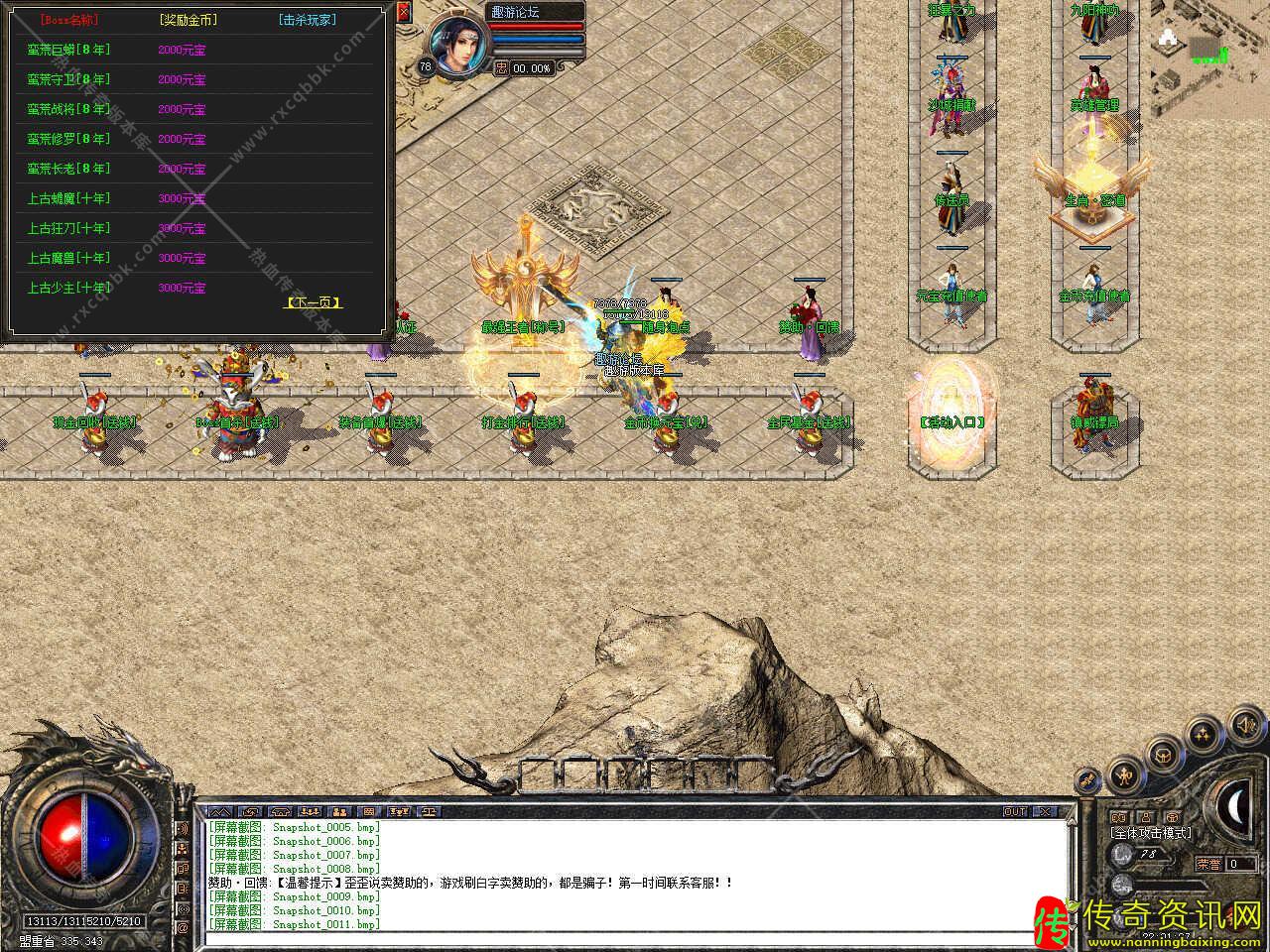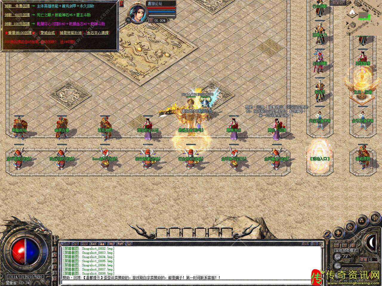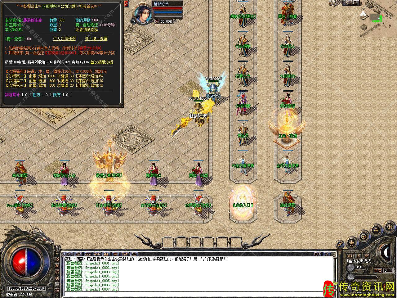 版本介绍:沙城捐献可获得怪物切割+2%,还有专属捐献地图,此地图BOSS云集(前期无等级必备地图)。