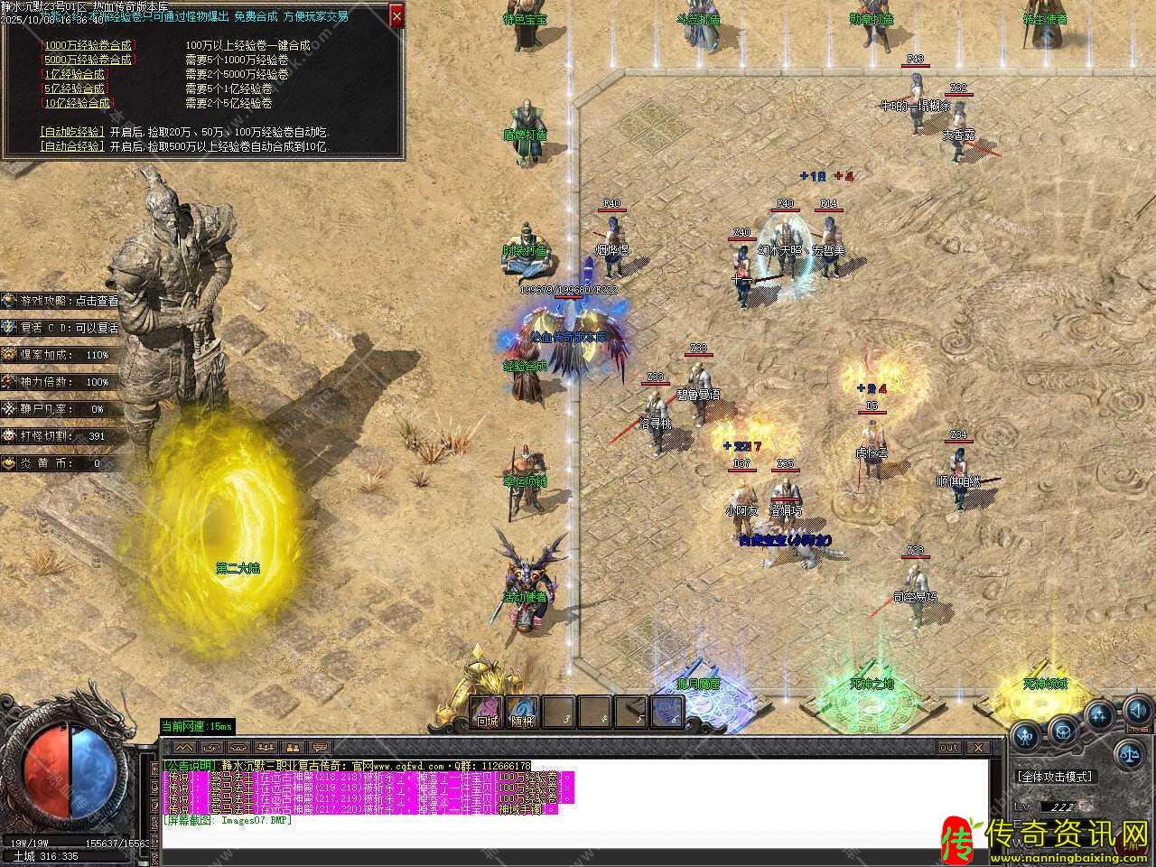 三、此传奇版本在静寂城主那里可以突破等级,这可是江湖失传已久的秘术。只要你凑齐相应的水晶就能帮你突破等级,75级封顶,71级奖励1.01倍攻击,72级奖励1.03倍攻击,以此类推。