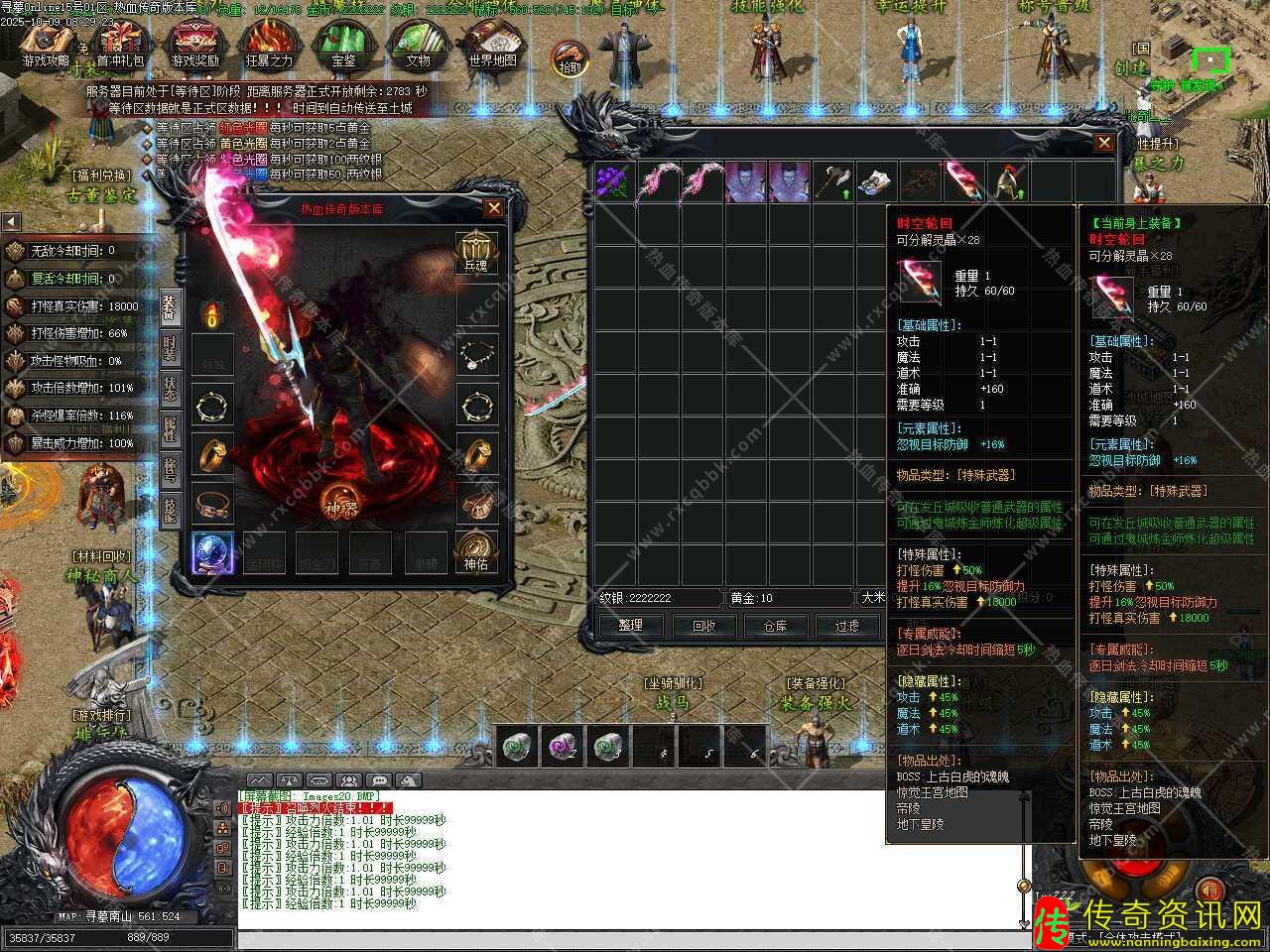 三、添加专属觉醒NPC,觉醒有一定成功几率,失败只扣除黄金+材料,操作时请将需要觉醒的装备放入NPC下面框内,系统会根据您放入的专属装备,显示需要觉醒的条件和觉醒后装备属性。