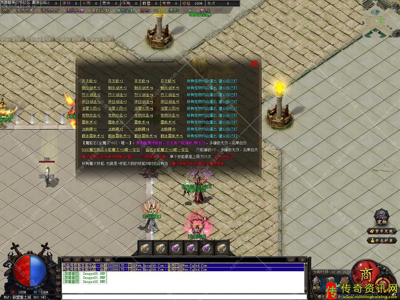 版本介绍:此热血传奇私服服务端版本所有任何技能打所有怪物都会直接爆出技能书,未学习的技能使用技能书可学习,已学习的使用技能书会对技能进行强化,技能强化最高九重,多余的技能书可回收为书页,书页也可在特殊商人处随机兑换任意技能,赞助也有赠送部分技能。 本帖最后由 传奇版本库 于 2025-3-8 22:26 编辑
