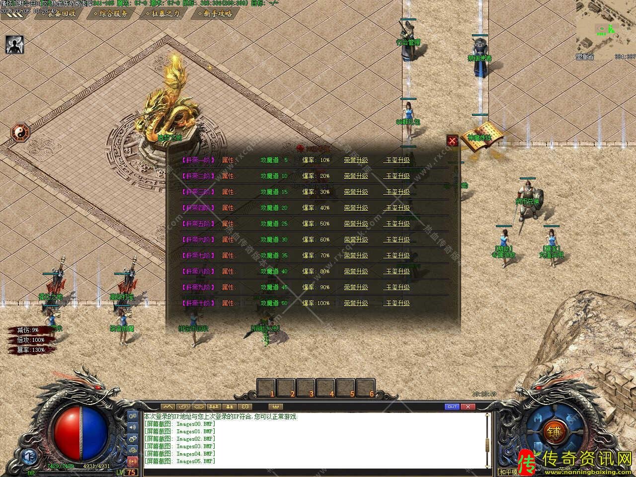 版本介绍:此热血传奇私服服务端怪物分为白-粉-紫-黄-橙-红,以此排列等级,白怪最高爆出圣灵和血煞级别装备;粉怪最高爆出昊天和血煞级别装备;紫怪最高爆出热血沸腾和炎魔级别装备,底攻怪爆低保 高攻怪爆高攻,(爆特殊单件 紧箍咒 魔戒 神力手环,风神带和各种橙色剑甲,具体看是那个地图的怪就爆出那个地图出产的装备)。