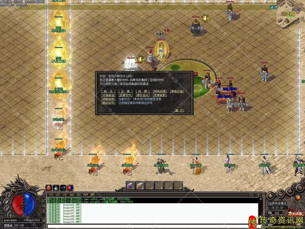 七.本服法师玩家也可以召唤随宠,所有法师宠物在未知暗殿地图召唤,其他地图同名怪物无法召唤,35级召唤5只工蚁、55级召唤5只蚁后、65级召唤5只法王、75级召唤5只魔兽。