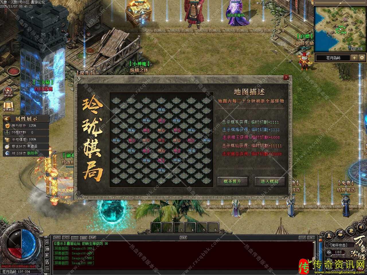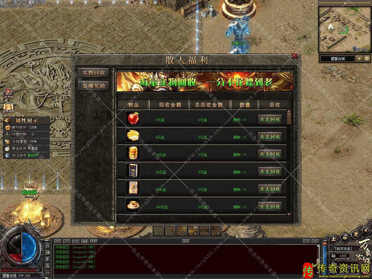二.新增赞助技能,自动拾取技能有两种自动拾取方式、自主切换,备注:因个别版本爆率过高,或者其他因素导致爆出物品后非常卡,此技能可切换两种自动拾取方式,供大家自行切换选择;赠送自动吸怪技能(每5秒自动执行吸怪技能并获得3秒无敌状态);记录坐标技能,可记录5个坐标点,全服任意飞行,个别特殊地图会有限制使用;综合技能便捷,有上述所有功能,一键搞定方便快捷,增加智能挂机系统,注:以上所有功能均为技能效果,领取后使用技能即可生效。