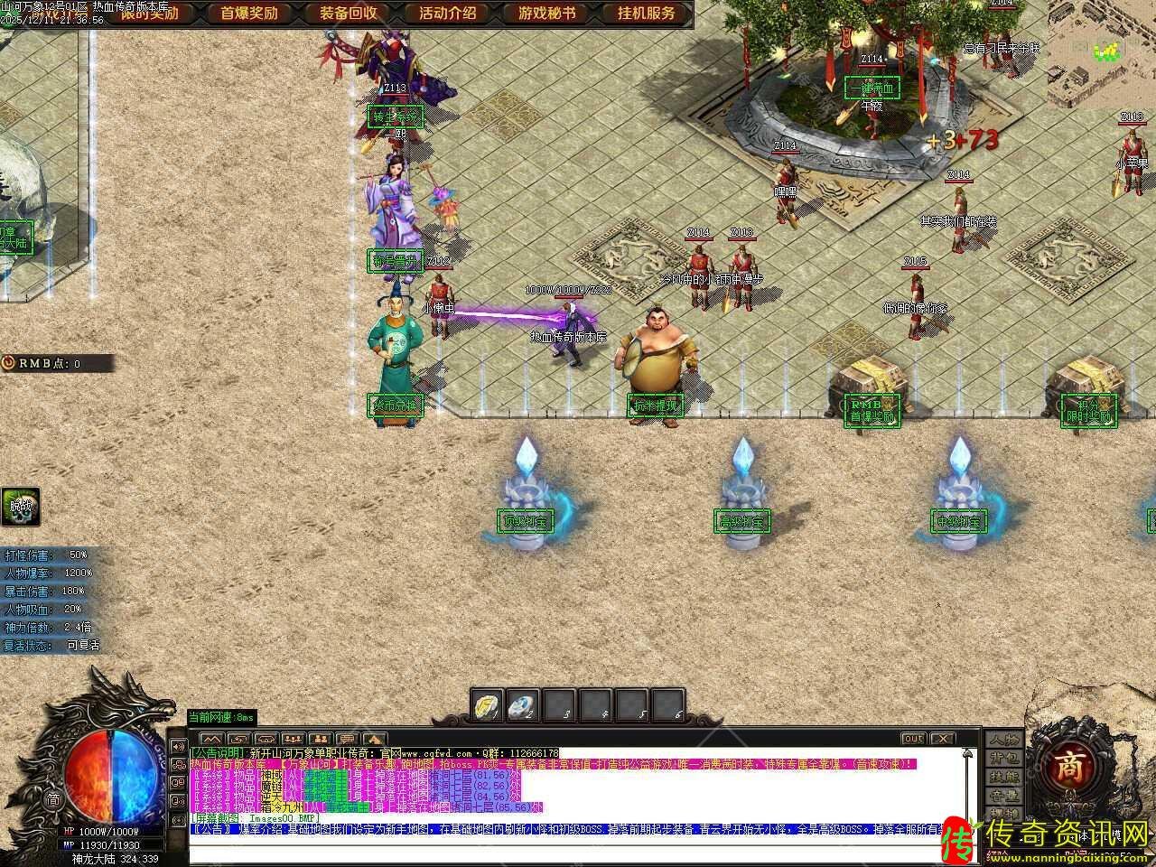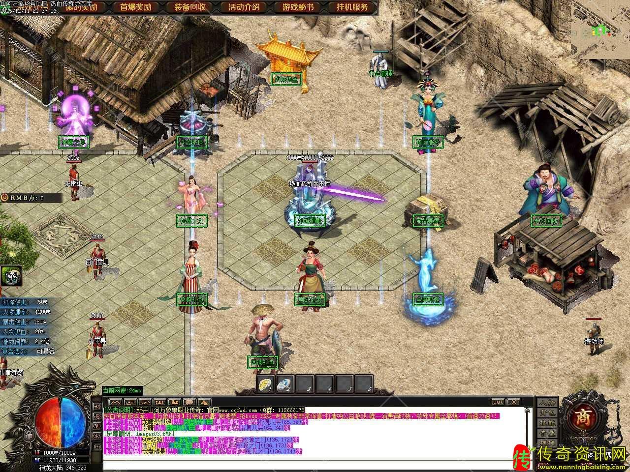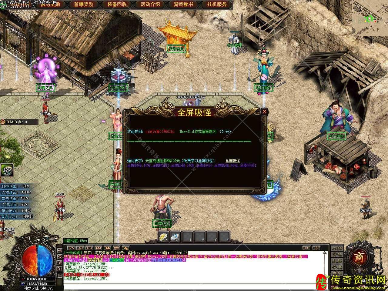 二.新增测试奖励功能,在测试区打到限时奖励获得的游戏点可以记录,记录不限制次数!记录1元限时开区后便可以获得10000元宝+1积分奖励,在测试区一定要在NPC那记录测试区限时,如无记录则开区无法领取。