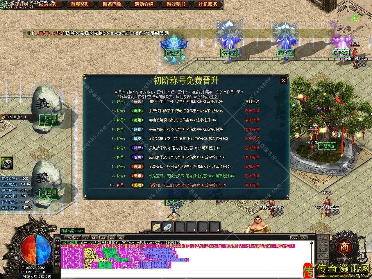 三.新增神魔进阶玩法,神魔最高10级,进阶100%成功,所有属性全部10级可领取神魔圆满称号,翎取后可获得爆率提升+50%和打怪伤害+10%的附加属性值。