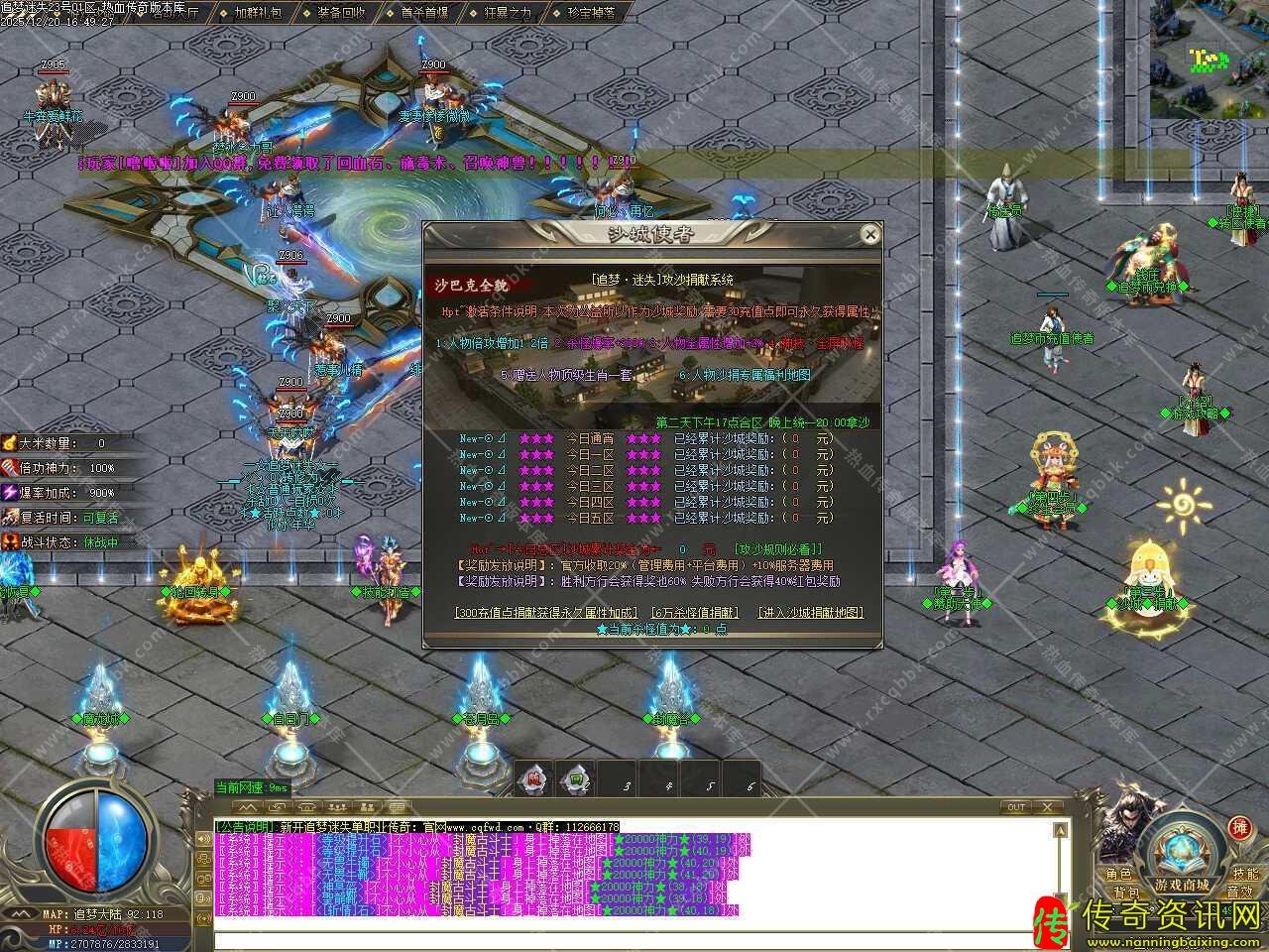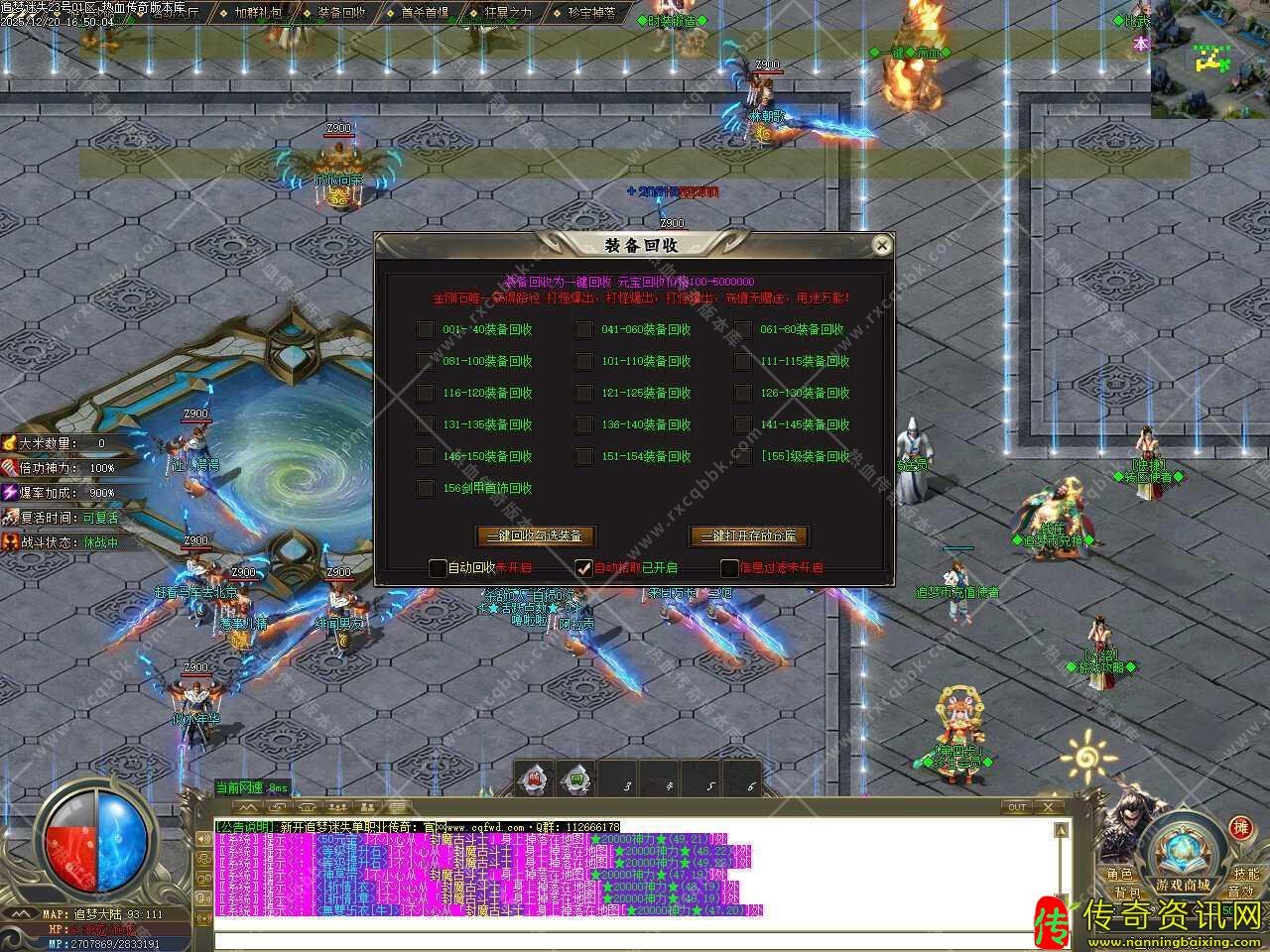 二.添加擂台玩法,擂台上不能穿脱装备,穿戴装备视为挑战失败,装备消失,所有擂台大退或小退系统默认挑战失败,同样会出现爆装备现象,打擂出现服务器无法抗拒原因,造成装备没捡到,本服概不负责。