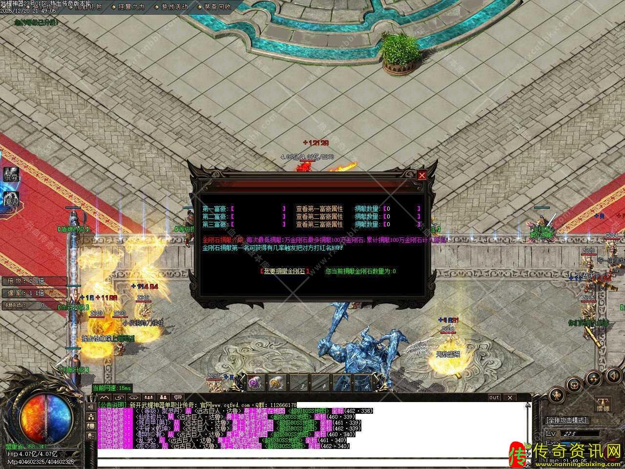 三.本服主要以元宝和金刚石为主,元宝打怪回收获得洗炼装备(增加血量攻击后期非常重要必点),金刚石打怪回收获得,首爆获得:升级称号(增加血量攻击爆率)。