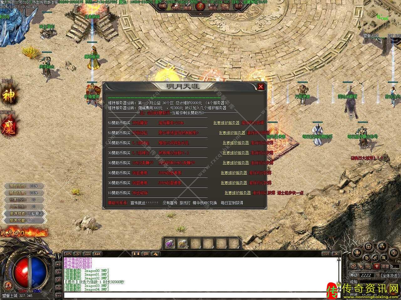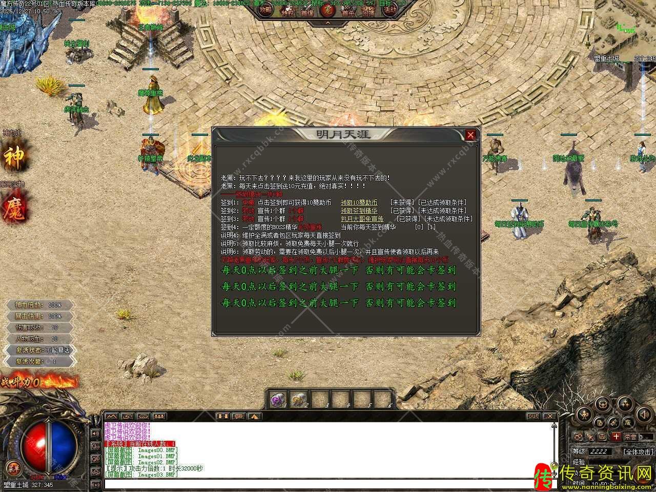五.新增福利使者NPC,公益福利:给大家送赞助币了,如果你没群宣传,那么给你一个渠道,用2W的BOSS精华兑换1赞助币,经验换取相当于以前的泡点。10转玩家可使用1赞助币换取5000W经验,每天限制200次,散人玩家可以打精华换取,每天签到,游戏打BOSS掉落,包月的玩家可以每天签到获取赞助币。