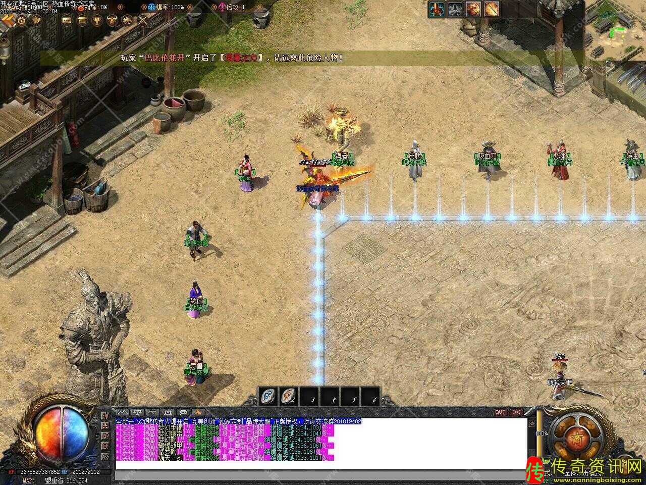 新增元素提升npc,仰望九曜天辰﹑力量秉然,由攻伤﹑狂热﹑破甲﹑减伤所组成的元素,一旦**完成将拥有浑厚的力量,单个元素最高10%,全部点满获得加50%爆率和加20%的打怪伤害,可以使用50万元宝一键全满。