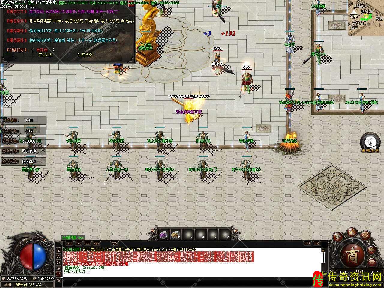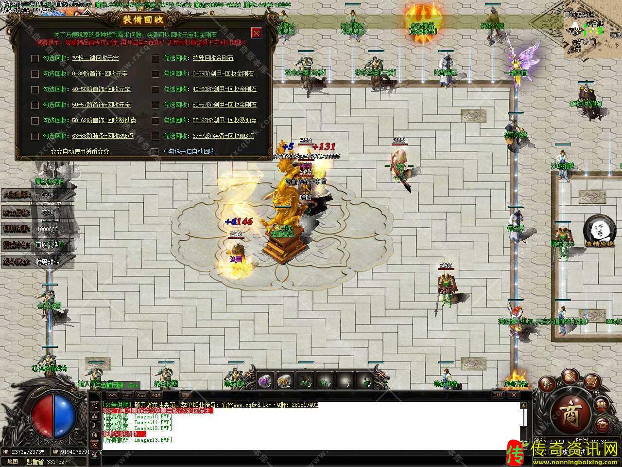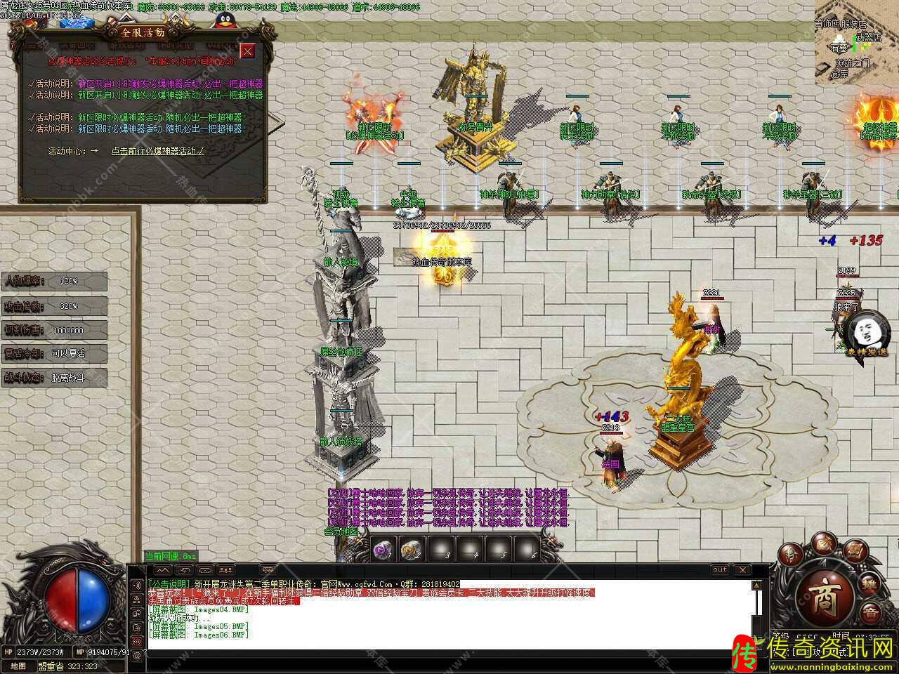 二.更新转生到55转,55转召唤5只终极GM随宠,轻松打全服所有的BOSS怪物,还更新了一大陆所有地图刷新必爆游戏点怪,1小时刷新一次,散人玩家的福利。