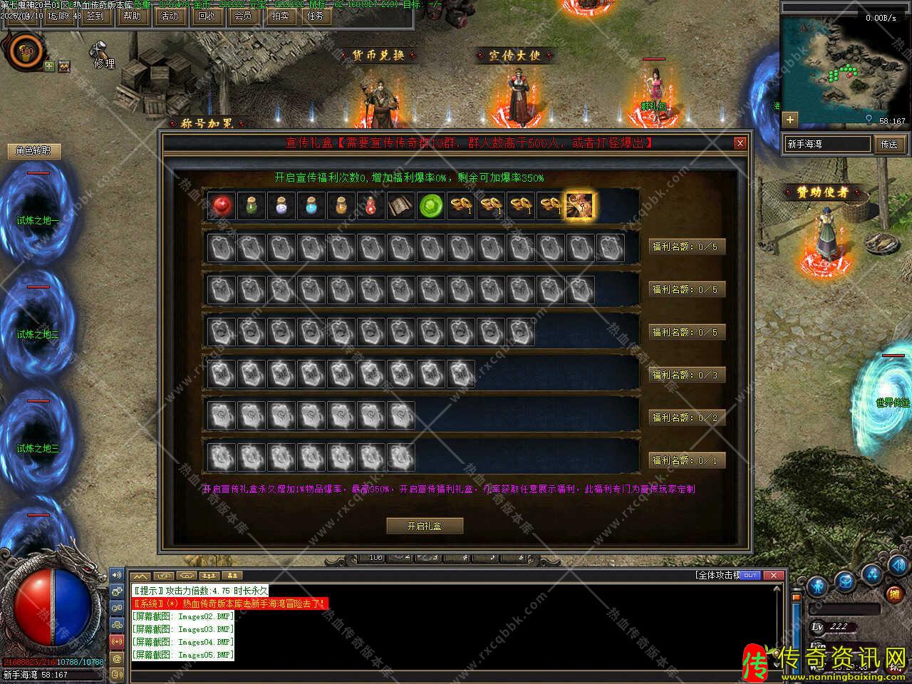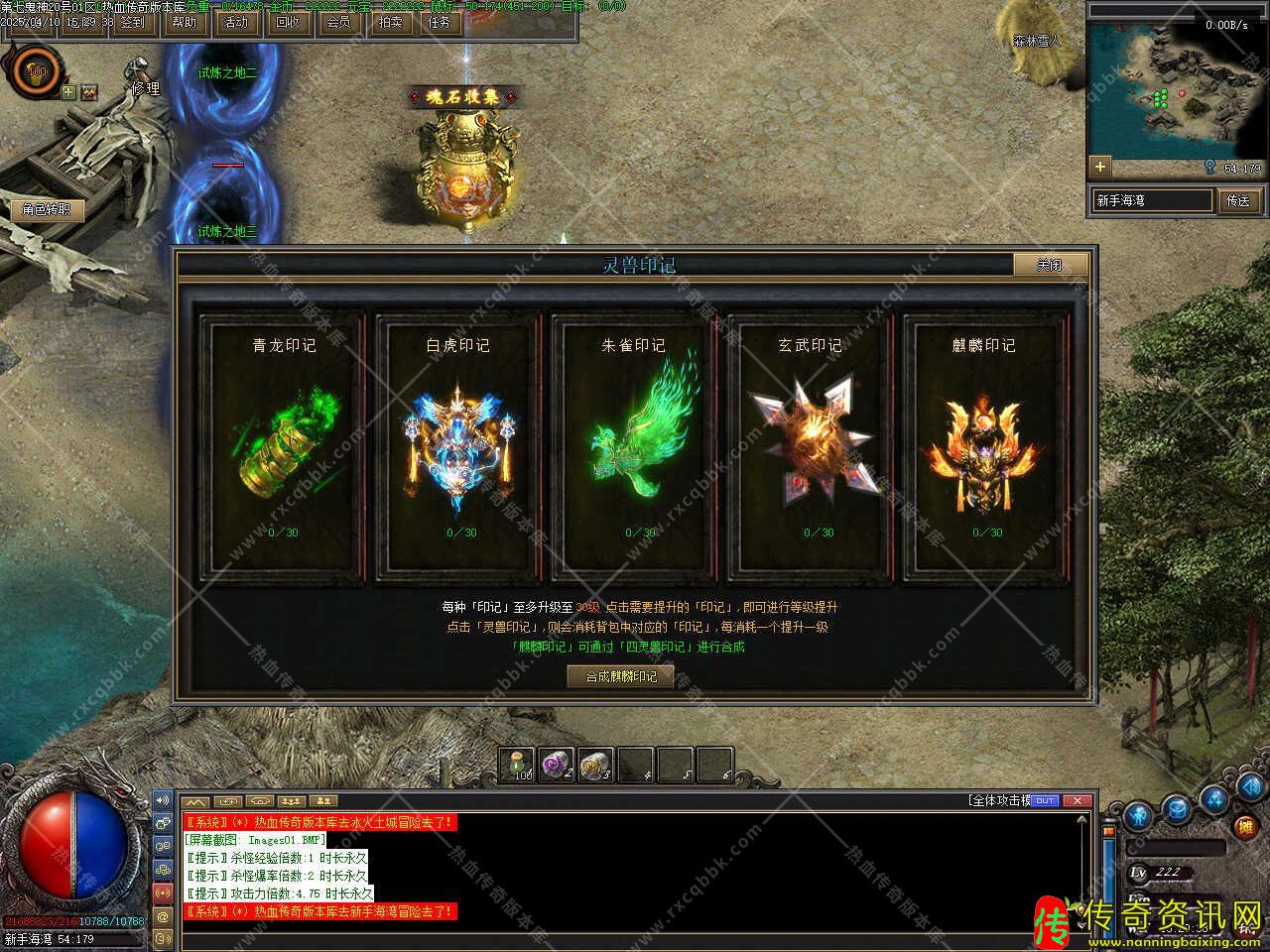 版本介绍:此热血传奇私服服务端新增独一无二的神器培养系统(养成玩法)需要游戏内使用活力,进入活力地图打不同阶段的怪物掉落材料进行培养,根据不同职业,不同需求,搭配适合自己的培养属性,最终神器可培养8条不同的属性,可以制定属于自己的三种玩法,可自由切换,具体培养属性,请在游戏内神器培养界面介绍查看。